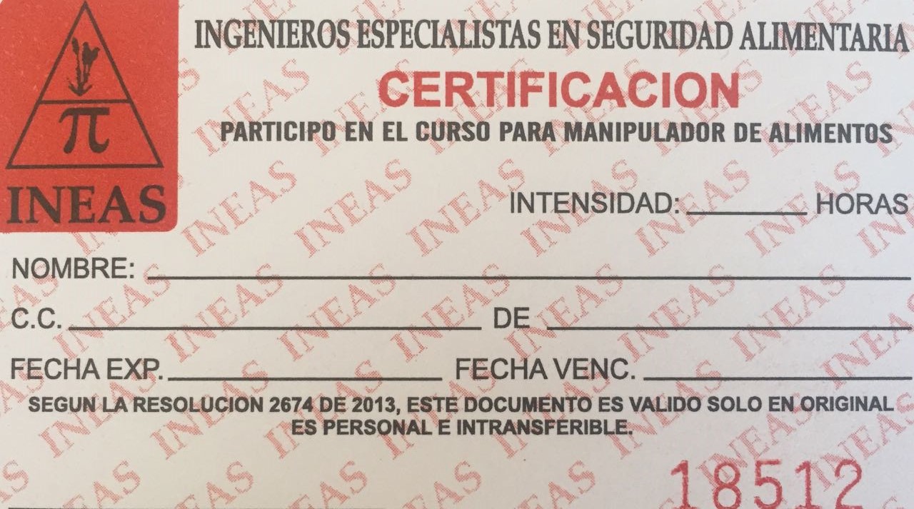 De acuerdo a la resolución 2674 de 2013, todos los manipuladores de alimentos deben realizar el curso de manipulación de alimentos, para obtener su certificación, que tendrá validez por un año.